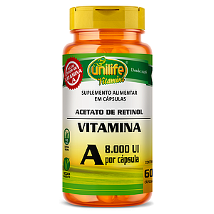 Vitamina A - Retinol 8000UI - 500mg 60 cápsulas Unilife